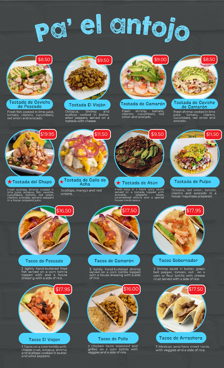 For those who crave spice, the Aguachile series offers fresh shrimp drenched in vibrant red, black, or green sauces. Don’t miss the Copa Viagra, an invigorating cocktail of shrimp, octopus, and oysters that sets the tone for an unforgettable dining experience. Whether you're a seafood lover or a casual diner, El Viejon's diverse offerings promise to satisfy every craving.
